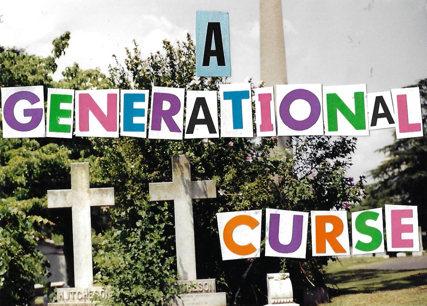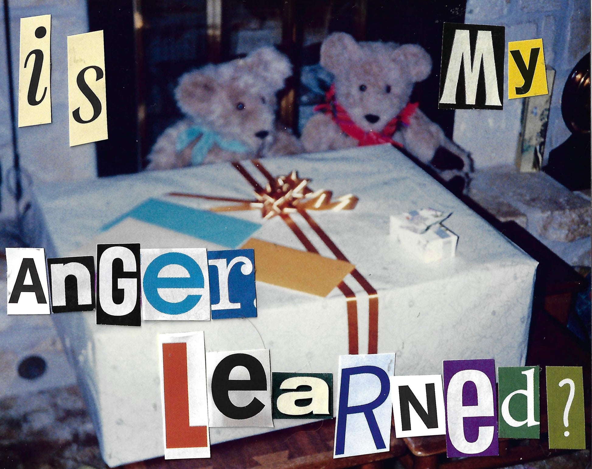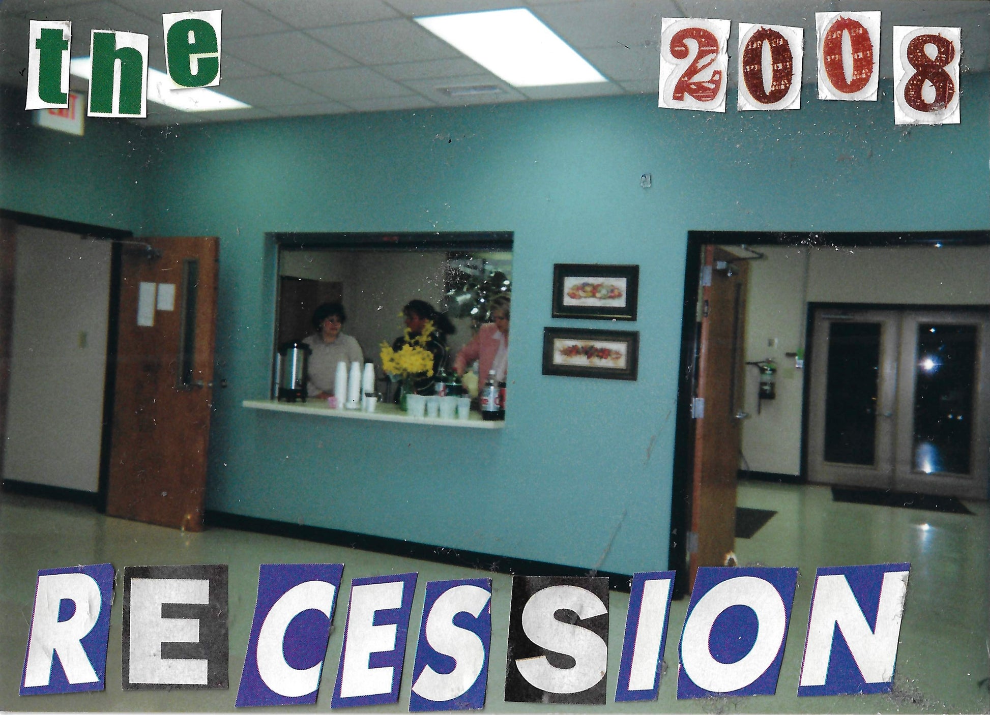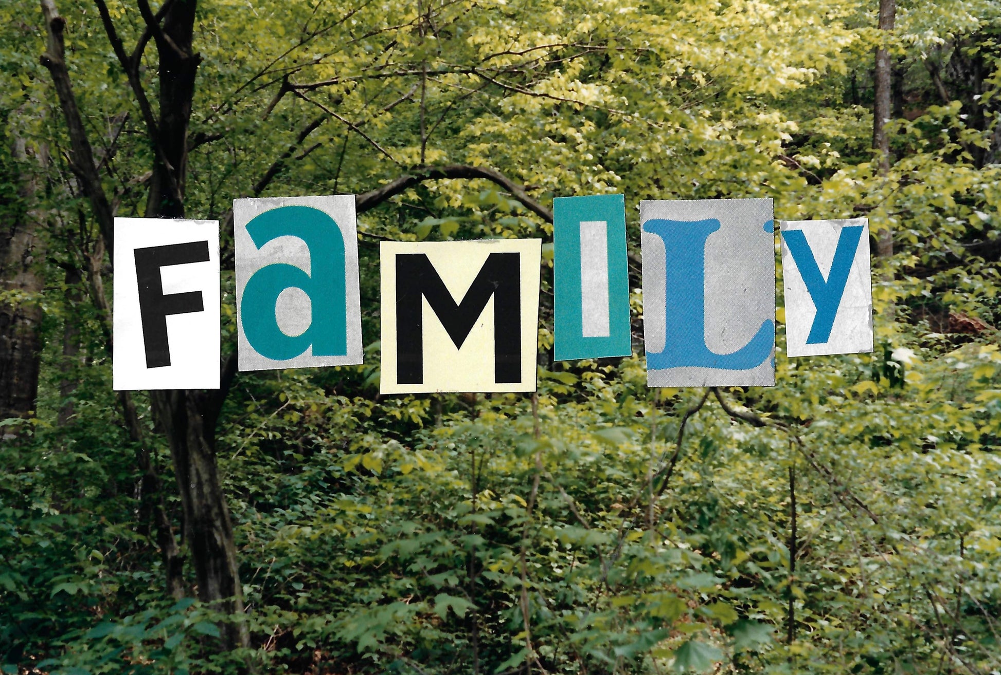 hand made out of donated family photos, magazine letter cutouts and stickers.