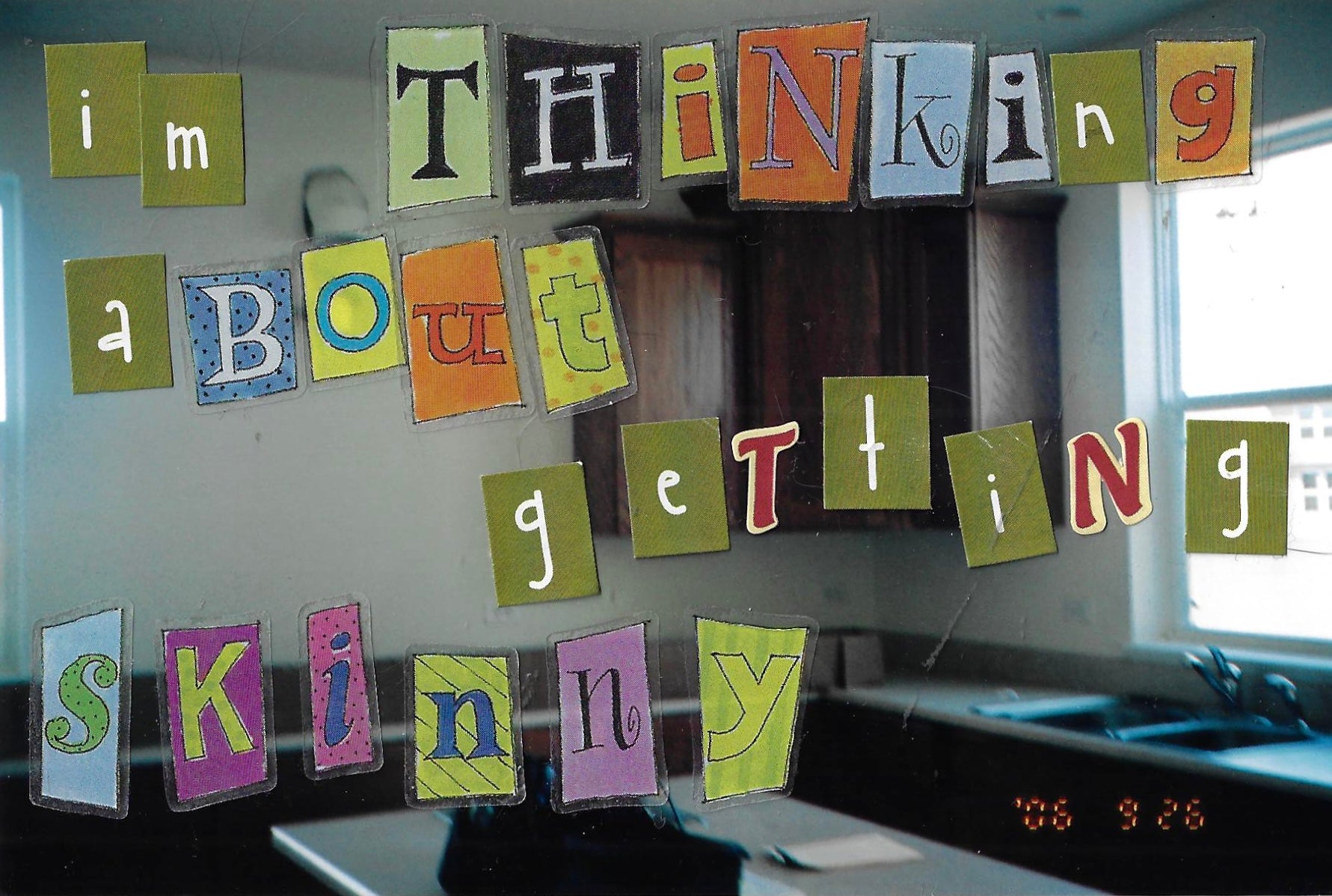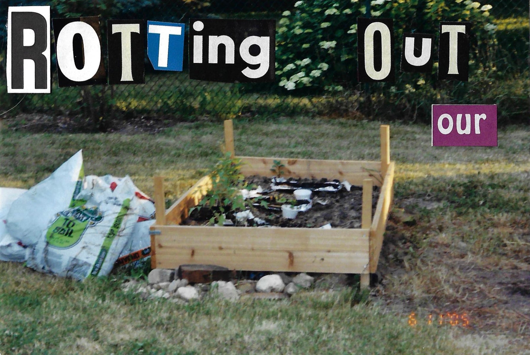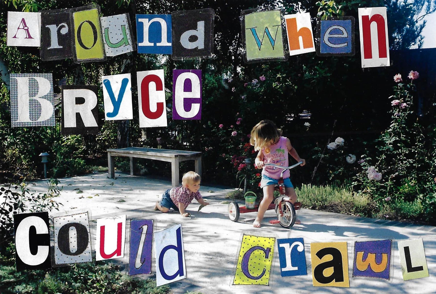 hand made out of donated family photos, magazine letter cutouts and stickers.