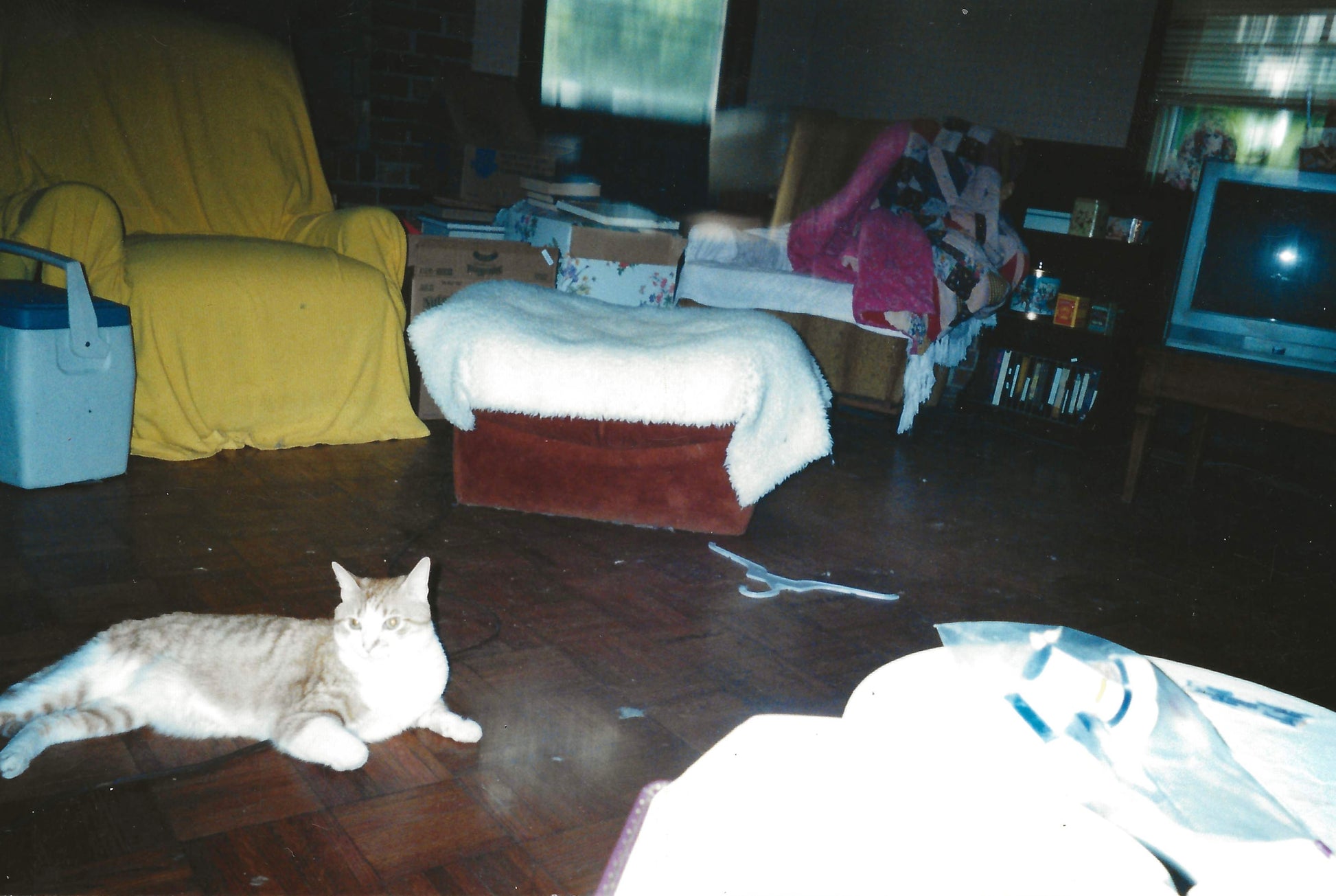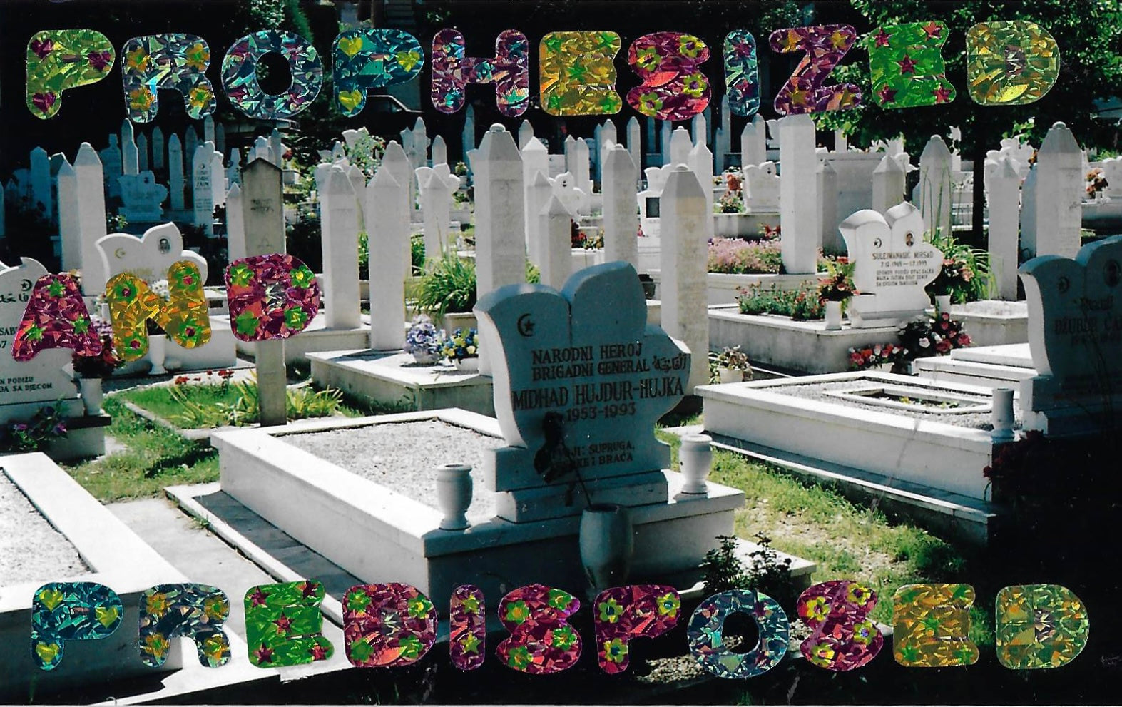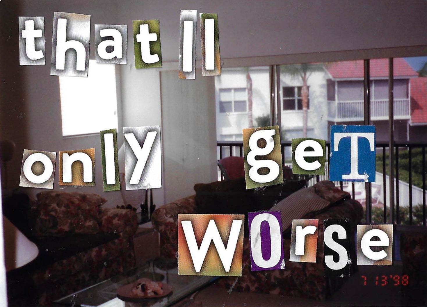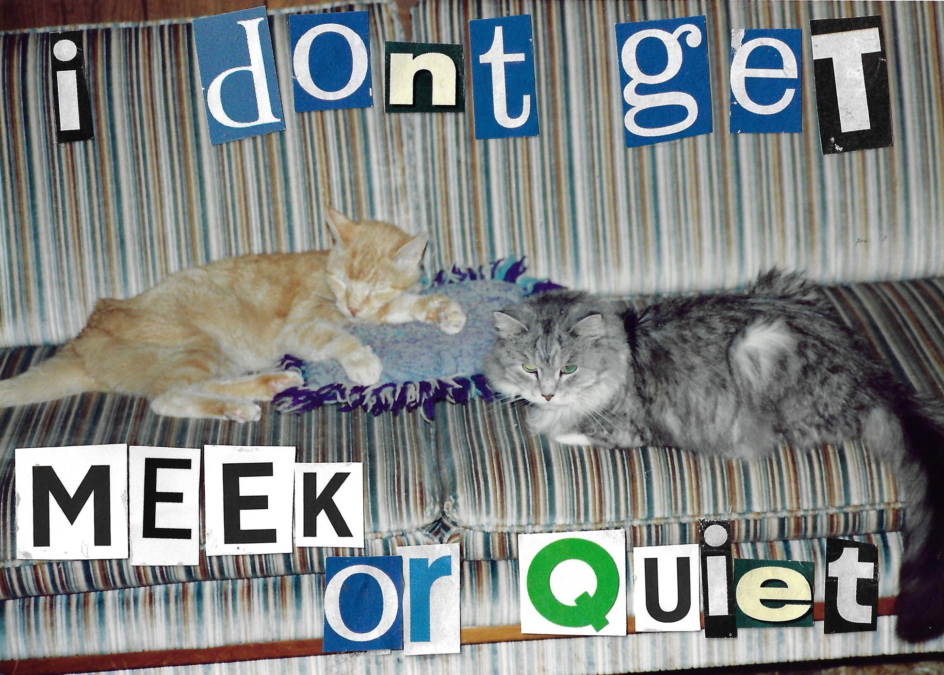 hand made out of donated family photos, magazine letter cutouts and stickers.